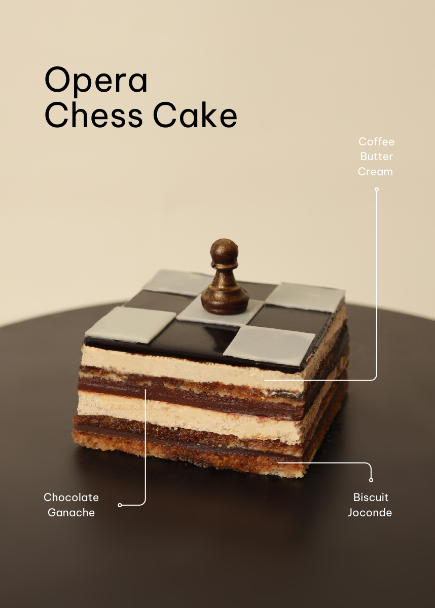 Opera Chess Cake thuộc 𝐂𝐡𝐞𝐬𝐬 𝐂𝐥𝐮𝐛 𝐒𝐞𝐭, với vị cà phê kết hợp cùng chocolate nồng nàn, Opera Chess Cake gây bất ngờ từ miếng cắn đầu tiên bởi sự đậm đà mà không ngọt gắt.